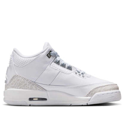 The Air Jordan 3 "Pure Money" returns in Fall 2025 after an 18-year absence. This all-white retro, featuring elephant print laces and silver accents, echoes Jordan Brand's luxurious lifestyle era.