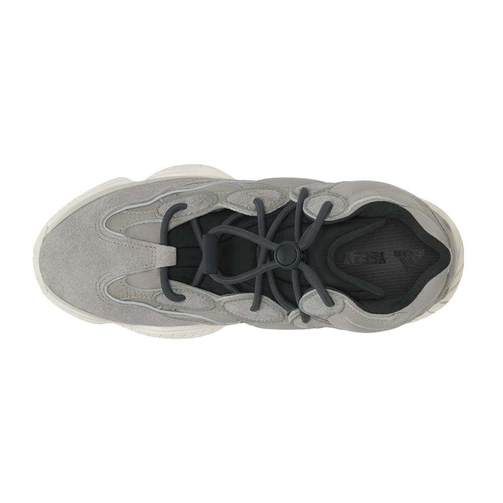 The adidas Yeezy 500 High ‘Mist Stone’ showcases a neutral greyscale finish on a mixed-material build composed of flexible elastane with reinforced overlays in cow suede and tumbled leather. Contrasting hits of black distinguish the sneaker’s padded tongue and toggle lace closure, which combine with a high-cut collar for a secure fit. A rubber wrap along the base of the upper gives way to a cream-colored adiPRENE midsole, featuring podular construction modeled after adidas’ retro Feet You Wear technology.
