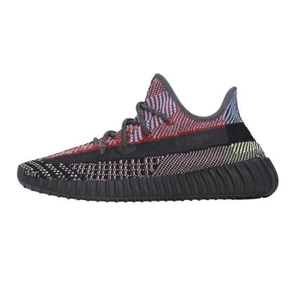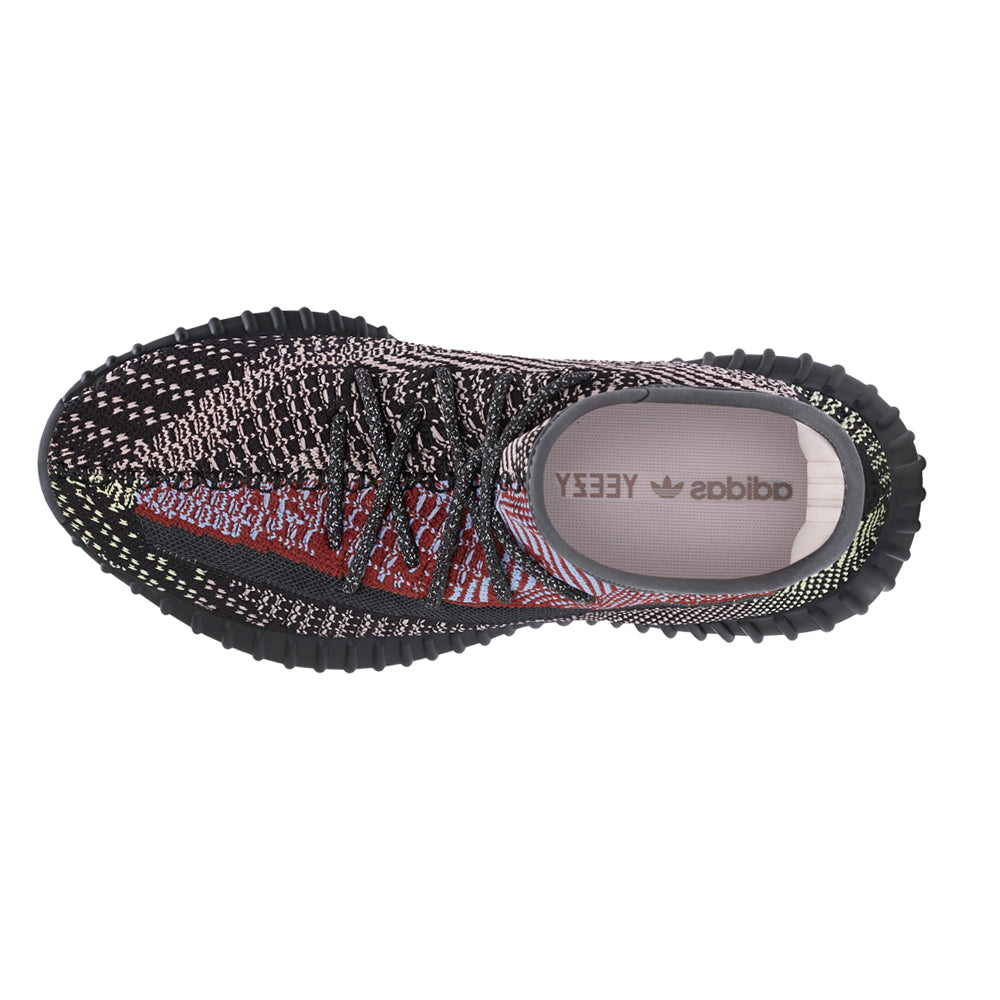 The adidas Yeezy Boost 350 V2 'Yecheil' sneaker departs from previous renditions connected by signature earth tones. Multicolored yarns give a graphical look to the Primeknit upper. Classic features include rope laces, Three-Stripes at the inner heel and a translucent monofilament stripe through the lateral. The same 350 midsole/outsole is blacked out and still houses full-length Boost cushioning.