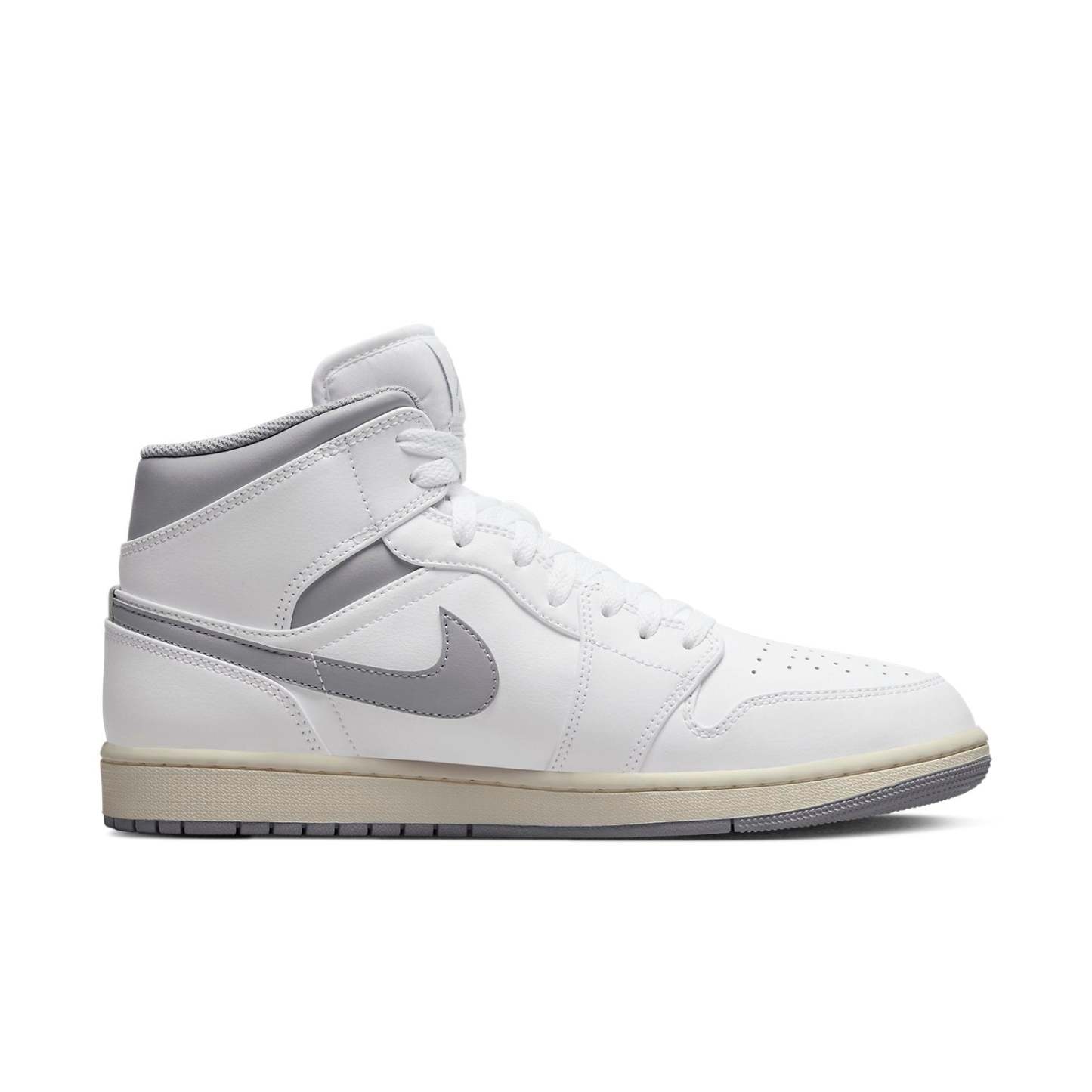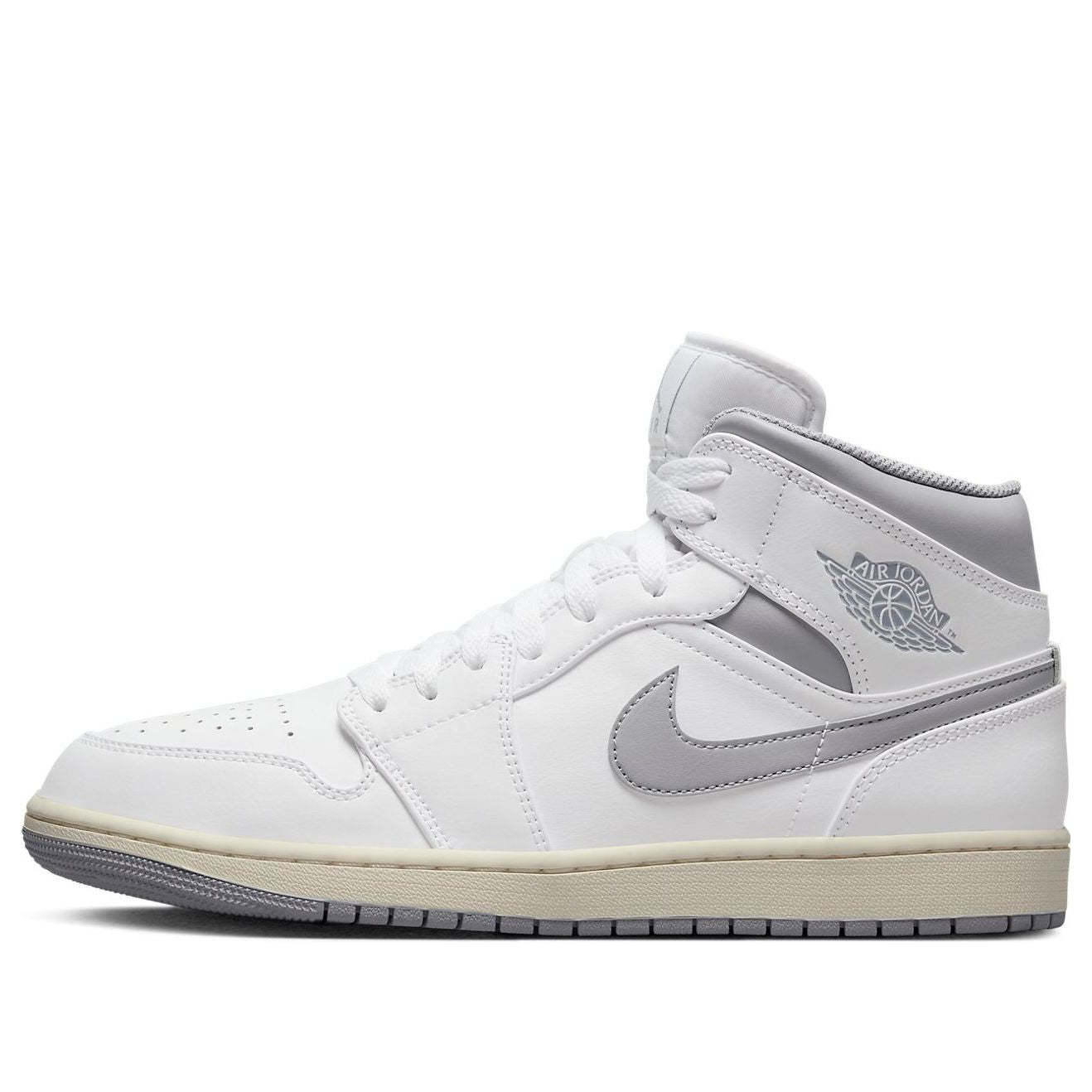 The Air Jordan 1 Mid 'Neutral Grey' is a stylish sneaker with a white leather base, grey Swoosh, Wings logo, tongue branding, and lining. It is perfect for any casual or active occasion. Inspired by the classic Air Jordan 1, this mid-top silhouette is part of a series of shoes that have been released since the 1980s. This sneaker features a rubber sole for added comfort and durability. With its timeless design, the Air Jordan 1 Mid 'Neutral Grey' is the perfect addition to any sneaker collection.